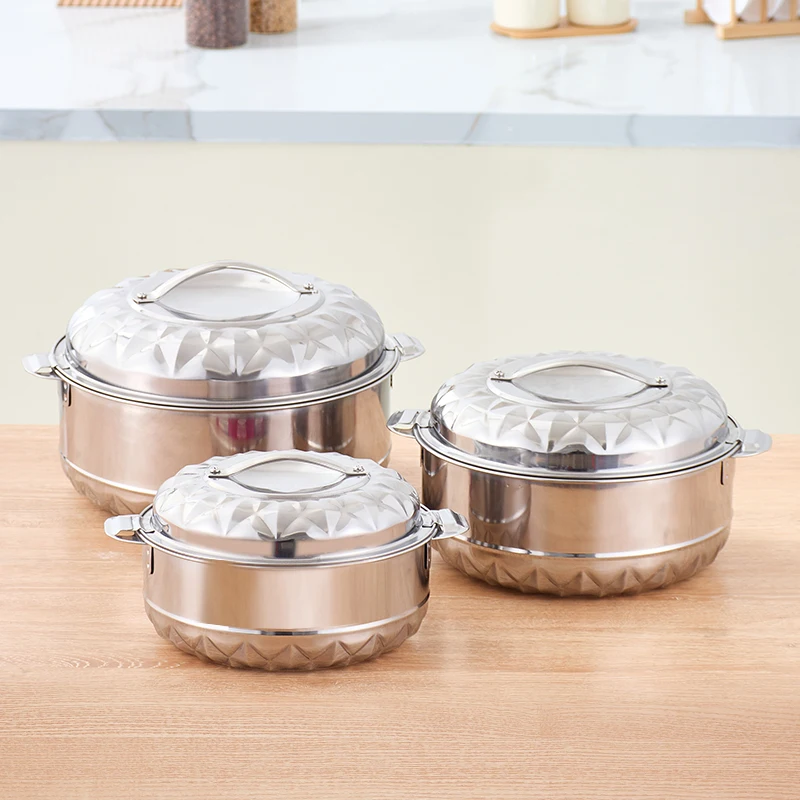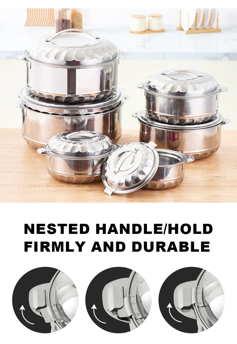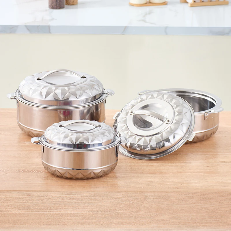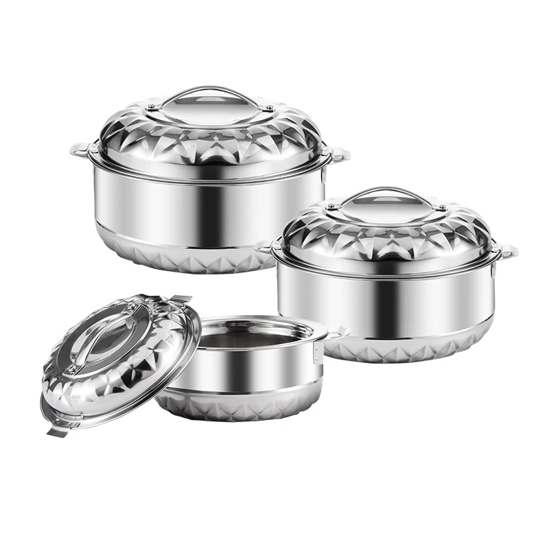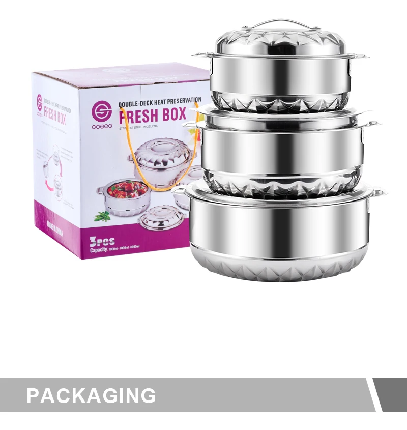 This 3-piece cookware set features a silver finish with stainless steel lids, made from durable 410 stainless steel. It’s eco-friendly and perfect for home or commercial kitchens. The set comes in a color box and allows for custom logos, combining classic design with practical use.